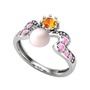 Pembe inci, sitrin ve pembe kuvars 14 ayar beyaz altın yüzük