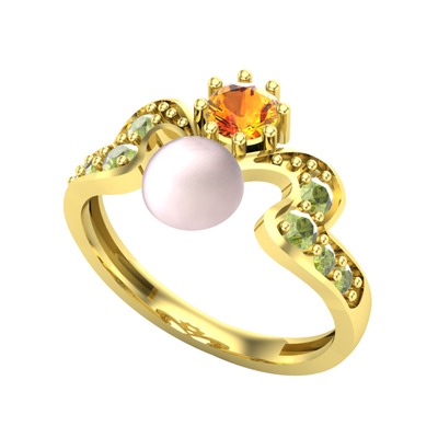 Pembe inci, sitrin ve peridot 925 ayar altın kaplama gümüş yüzük