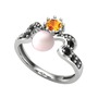 Pembe inci, sitrin ve siyah zirkon 14 ayar beyaz altın yüzük