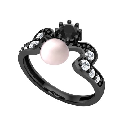 Pembe inci, siyah zirkon ve pırlanta 925 ayar siyah rodyum kaplama gümüş yüzük (0.48 karat)