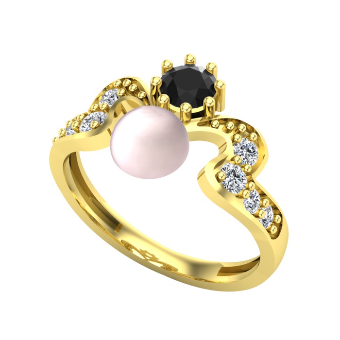 Pembe inci, siyah zirkon ve swarovski 14 ayar altın yüzük