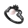 Pembe inci, siyah zirkon ve swarovski 925 ayar siyah rodyum kaplama gümüş yüzük