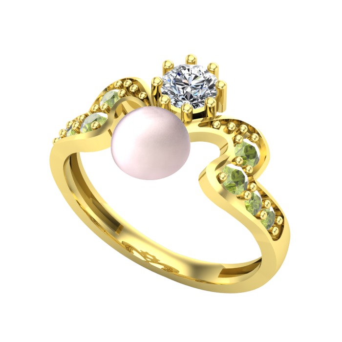 Pembe inci, swarovski ve peridot 14 ayar altın yüzük