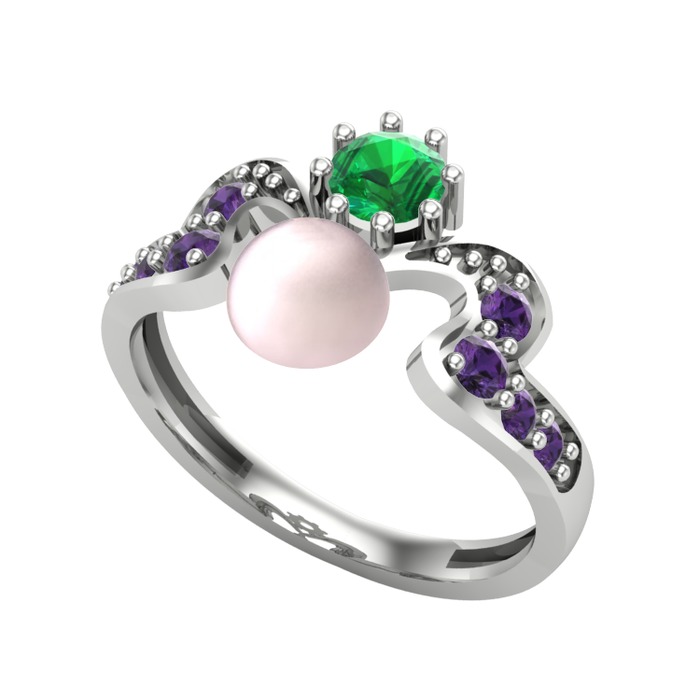 Pembe inci, yeşil kuvars ve ametist 925 ayar gümüş yüzük