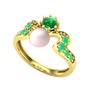 Pembe inci, yeşil kuvars ve kök zümrüt 925 ayar altın kaplama gümüş yüzük