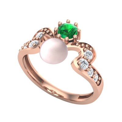 Pembe inci, yeşil kuvars ve pırlanta 8 ayar rose altın yüzük (0.48 karat)