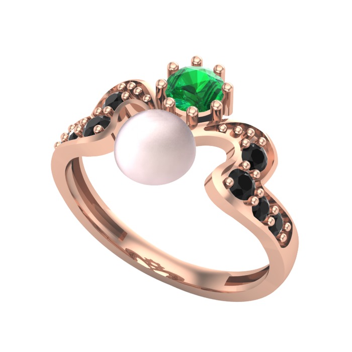Pembe inci, yeşil kuvars ve siyah zirkon 14 ayar rose altın yüzük