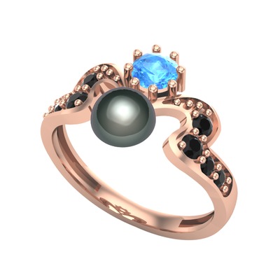 Siyah inci, akuamarin ve siyah zirkon 8 ayar rose altın yüzük