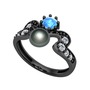 Siyah inci, akuamarin ve swarovski 925 ayar siyah rodyum kaplama gümüş yüzük