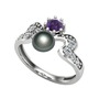 Siyah inci, ametist ve beyaz zirkon 8 ayar beyaz altın yüzük