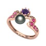 Siyah inci, ametist ve rodolit garnet 14 ayar rose altın yüzük