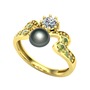 Siyah inci, beyaz zirkon ve peridot 14 ayar altın yüzük