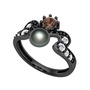Siyah inci, dumanlı kuvars ve pırlanta 925 ayar siyah rodyum kaplama gümüş yüzük (0.48 karat)