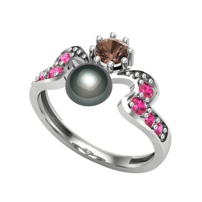 Siyah inci, dumanlı kuvars ve rodolit garnet 925 ayar gümüş yüzük