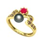 Siyah inci, kök yakut ve dumanlı kuvars 18 ayar altın yüzük