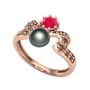 Siyah inci, kök yakut ve dumanlı kuvars 18 ayar rose altın yüzük