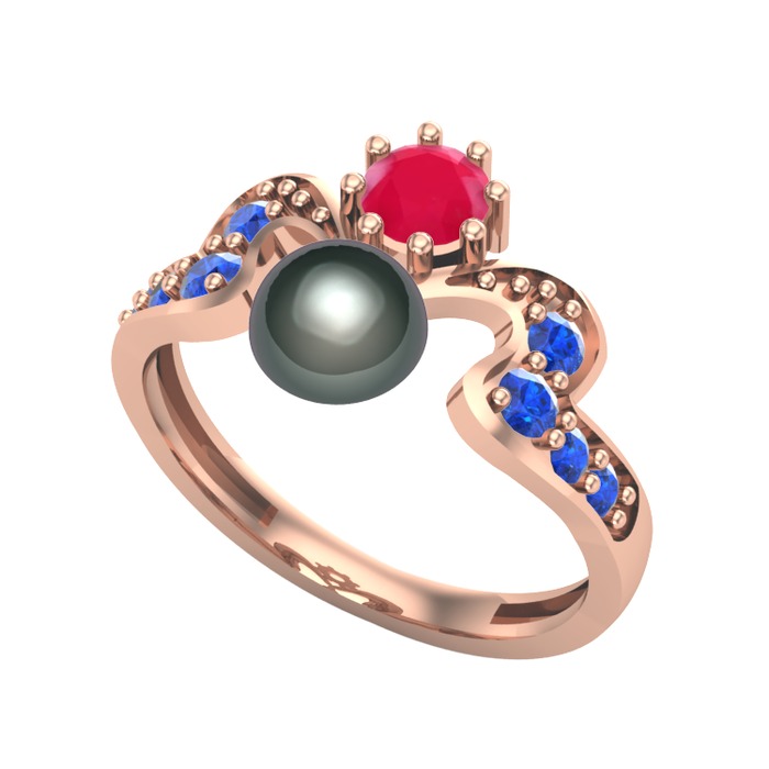 Siyah inci, kök yakut ve lab safir 8 ayar rose altın yüzük