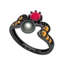 Siyah inci, kök yakut ve sitrin 925 ayar siyah rodyum kaplama gümüş yüzük