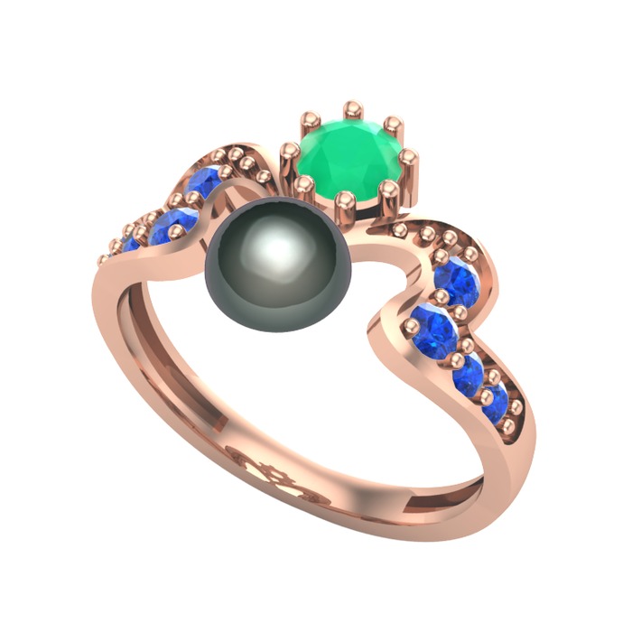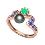 Siyah inci, kök zümrüt ve lab safir 18 ayar rose altın yüzük
