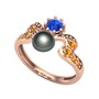 Siyah inci, lab safir ve sitrin 925 ayar rose altın kaplama gümüş yüzük