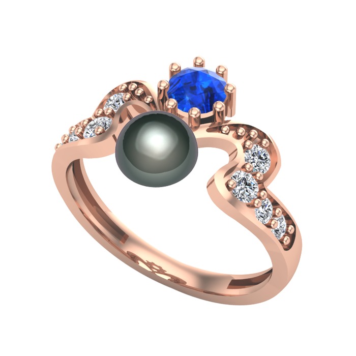 Siyah inci, lab safir ve swarovski 8 ayar rose altın yüzük