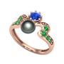 Siyah inci, lab safir ve yeşil kuvars 925 ayar rose altın kaplama gümüş yüzük