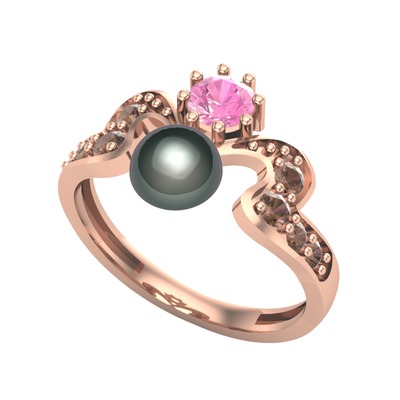 Siyah inci, pembe kuvars ve dumanlı kuvars 8 ayar rose altın yüzük