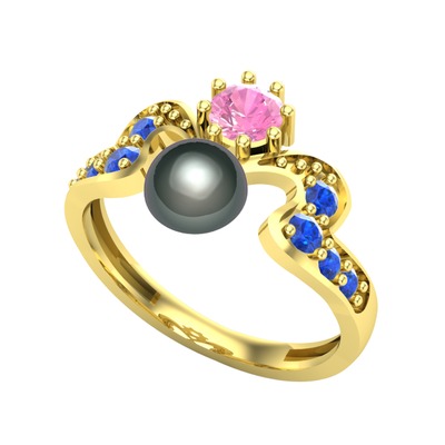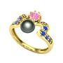 Siyah inci, pembe kuvars ve lab safir 14 ayar altın yüzük