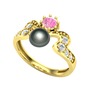Siyah inci, pembe kuvars ve pırlanta 8 ayar altın yüzük (0.48 karat)