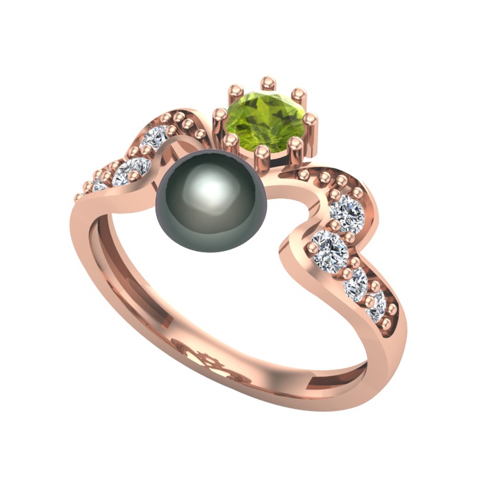 Siyah inci, peridot ve beyaz zirkon 8 ayar rose altın yüzük