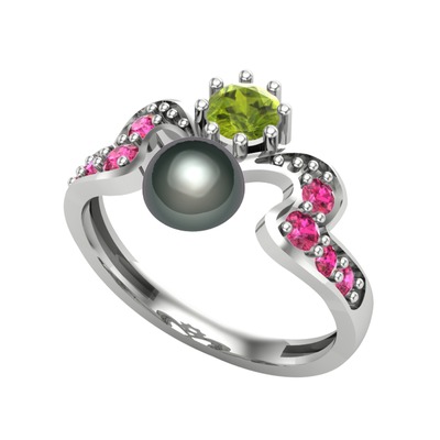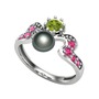 Siyah inci, peridot ve rodolit garnet 14 ayar beyaz altın yüzük