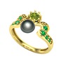 Siyah inci, peridot ve yeşil kuvars 18 ayar altın yüzük