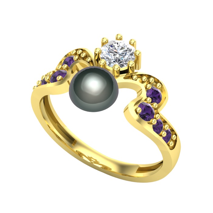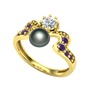 Siyah inci, pırlanta ve ametist 18 ayar altın yüzük (0.35 karat)