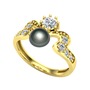Siyah inci, pırlanta ve swarovski 14 ayar altın yüzük (0.35 karat)