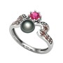 Siyah inci, rodolit garnet ve dumanlı kuvars 14 ayar beyaz altın yüzük