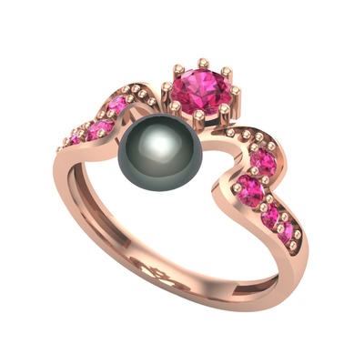 Siyah inci ve rodolit garnet 925 ayar rose altın kaplama gümüş yüzük