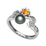 Siyah inci, sitrin ve beyaz zirkon 8 ayar beyaz altın yüzük