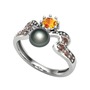 Siyah inci, sitrin ve dumanlı kuvars 18 ayar beyaz altın yüzük