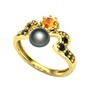 Siyah inci, sitrin ve siyah zirkon 14 ayar altın yüzük