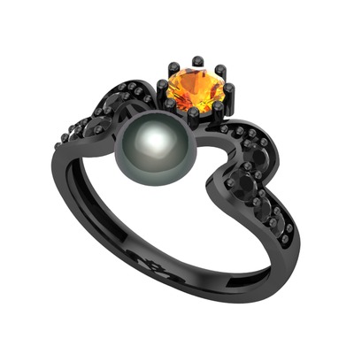Siyah inci, sitrin ve siyah zirkon 925 ayar siyah rodyum kaplama gümüş yüzük