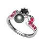 Siyah inci, siyah zirkon ve kök yakut 18 ayar beyaz altın yüzük
