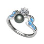 Siyah inci, swarovski ve akuamarin 18 ayar beyaz altın yüzük