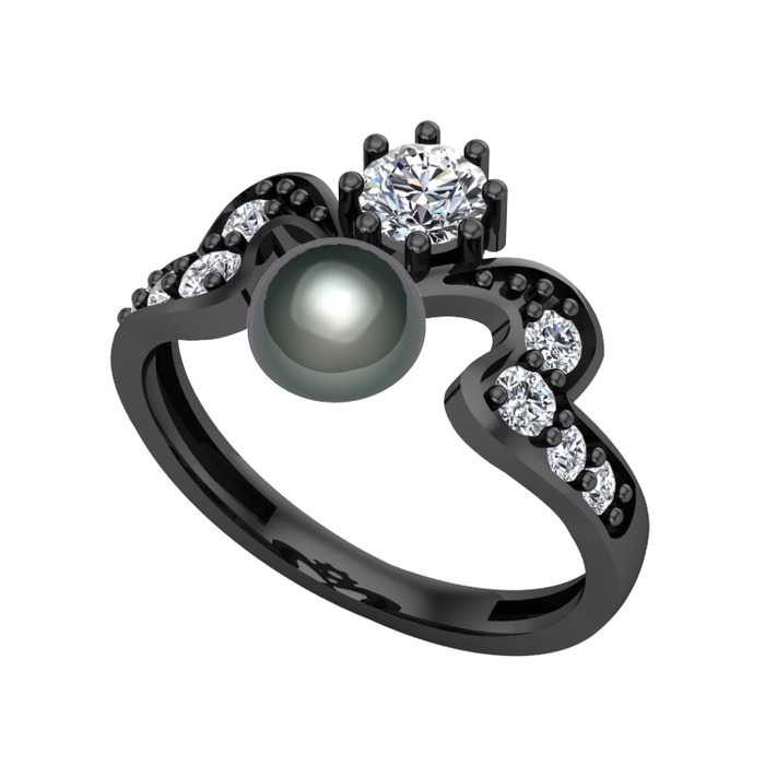 Siyah inci ve swarovski 925 ayar siyah rodyum kaplama gümüş yüzük