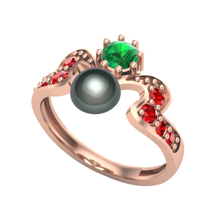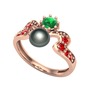 Siyah inci, yeşil kuvars ve garnet 14 ayar rose altın yüzük