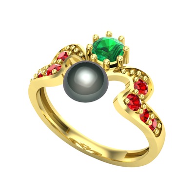 Siyah inci, yeşil kuvars ve garnet 18 ayar altın yüzük