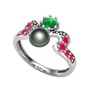 Siyah inci, yeşil kuvars ve kök yakut 18 ayar beyaz altın yüzük