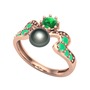 Siyah inci, yeşil kuvars ve kök zümrüt 18 ayar rose altın yüzük