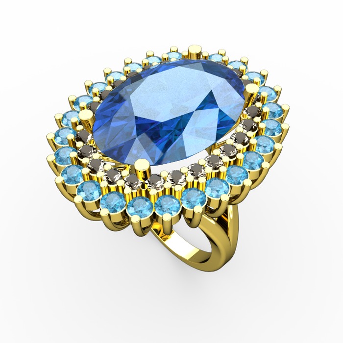 Akuamarin ve dumanlı kuvars 14 ayar altın yüzük