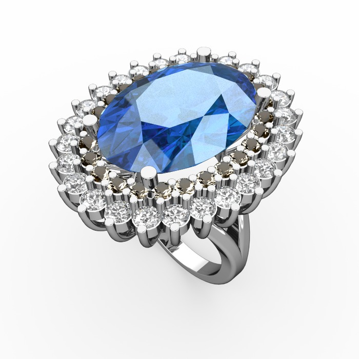 Akuamarin, dumanlı kuvars ve pırlanta 14 ayar beyaz altın yüzük (1.56 karat)