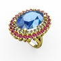 Akuamarin, dumanlı kuvars ve rodolit garnet 925 ayar altın kaplama gümüş yüzük